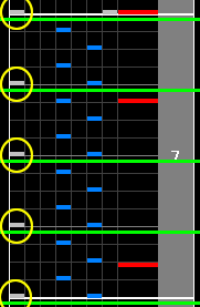 同時,以4分單位,有時因應譜面以8分單位,稍為大力一點按下去以維持節奏。高BPM曲抓準時,這個感覺尤其重要。
